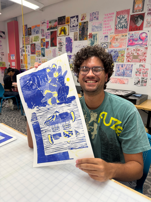 The conceptual direction for In Common Ink emerged through collaboration between the IPCO team, artist and OCAD U Chair of Illustration Shea Chang and Bahamian artist/curator John Cox. Chang’s expertise in print and risograph processes helped shape the project’s emphasis on shared, iterative mark-making, not only contributed to the project’s conceptual foundation but also led a hands-on workshop for participating artists, supporting the creation of works that embodied the project’s core values of collaboration, accessibility, and collective creativity.